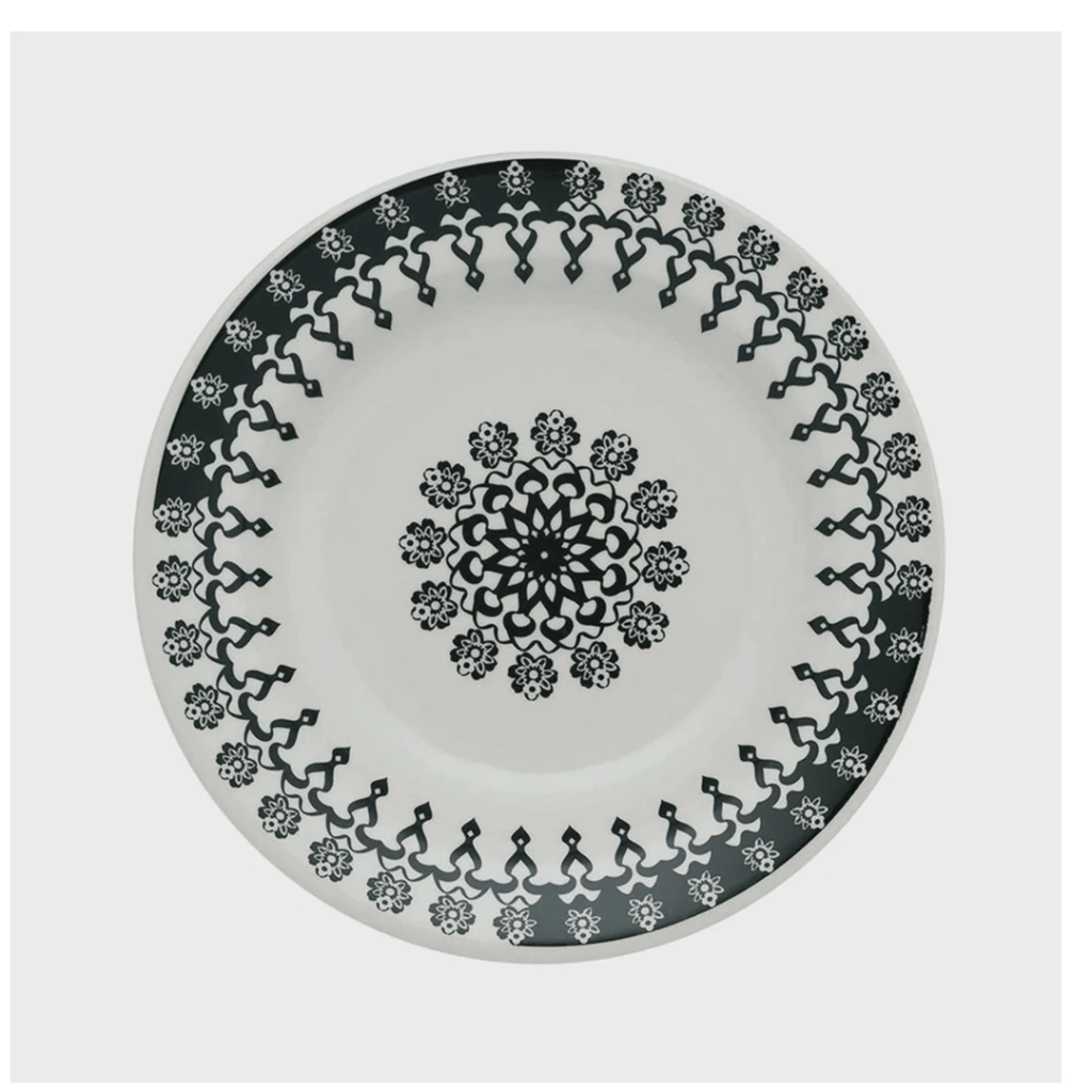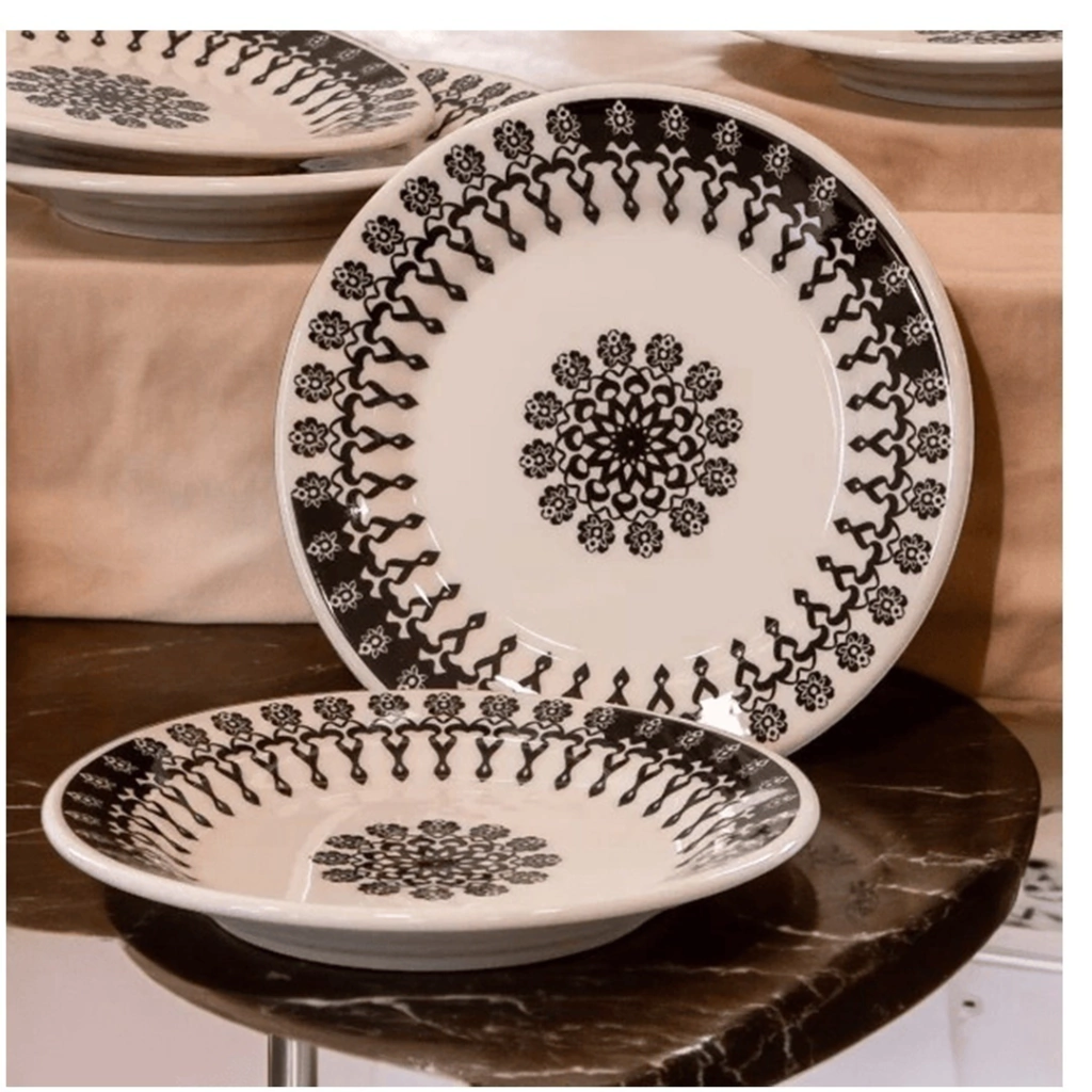 O aparelho de jantar Donna Folk traz alegria e tradição em cada refeição Traga mais cor e vida para sua mesa! Aposte na beleza atemporal do preto e branco, reinterpretados em uma estampa alegre e jovial. Perfeitos para quem busca um toque de personalidade e aconchego nas refeições do dia a dia.