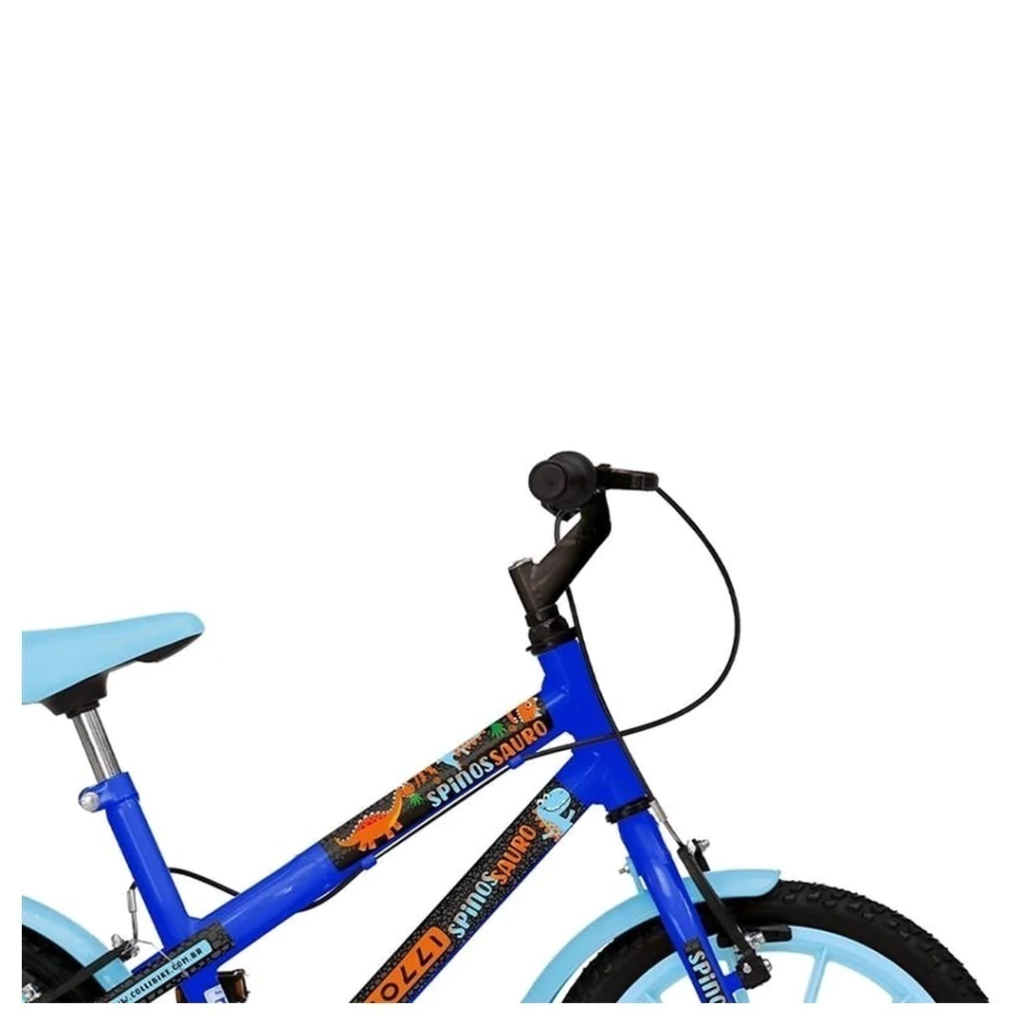 A bicicleta infantil Colli Spinoussaro na cor azul tem aro de 16", freios V-Brake, protetor de corrente, paralama e rodinha lateral. É ideal para crianças de 4 a 6 anos. Ela é uma bicicleta infantil de equilíbrio, que ajuda as crianças na hora de aprender as primeiras pedaladas. Possui ainda, quadro fabricado em aço carbono, material resistente e durável. Os freios são V-Brake, de fácil acionamento e manutenção. A rodinha lateral é removível, permitindo que a criança use a bicicleta sem ela assim que estiver mais segura. A Spinoussaro é uma bicicleta infantil divertida e segura, ideal para crianças que estão aprendendo a andar de bicicleta.