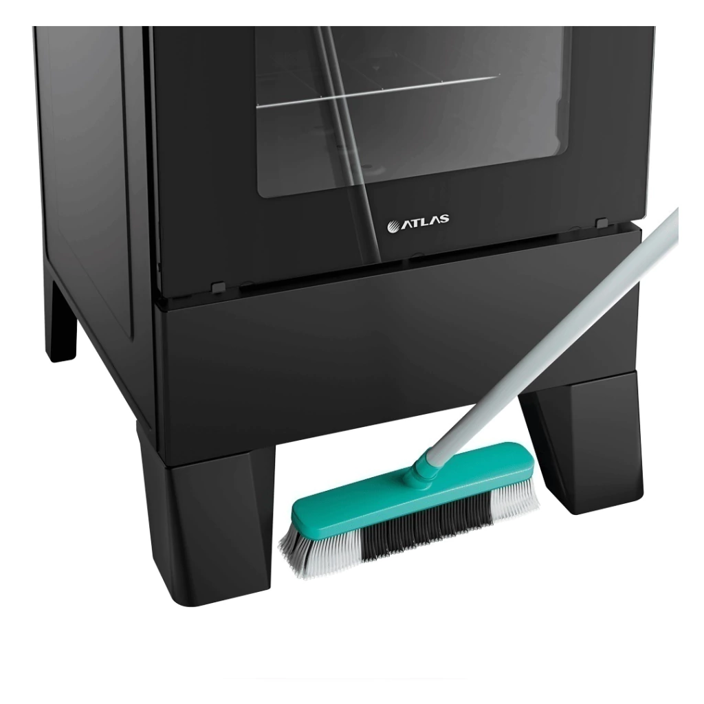 Fogão 4 Bocas Atlas Milão: bonito, prático e fácil de limpar. Do jeito que sua cozinha merece! Possui mesa em inox com tampa de vidro, que protege sua parede de respingos enquanto cozinha; acendimento manual; grades duplas; queimadores mais robustos e fáceis de limpar; além de pés altos e botões removíveis, que facilitam na hora da limpeza. O forno possui capacidade de 50 litros, uma grade deslizante e é revestido com o acabamento Limpa Fácil.