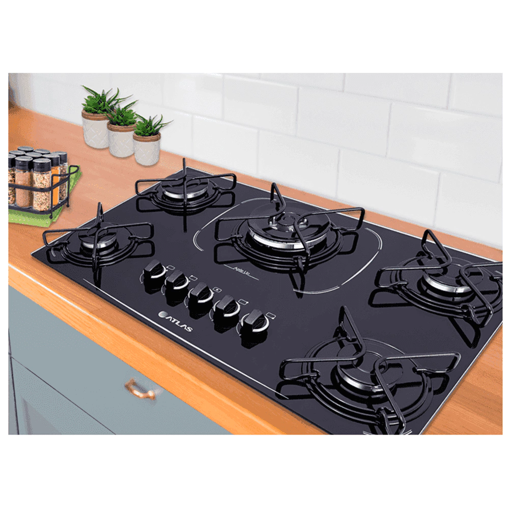 FOGÃO COOKTOP AGILE ATLAS 5BC TRIPLA CHAMA GLASS PRETO