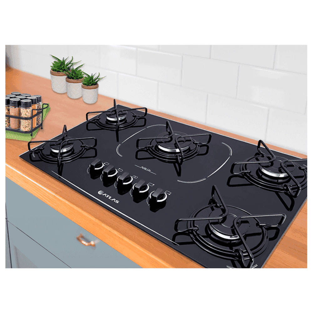 FOGÃO COOKTOP AGILE ATLAS 5BOCAS UP GLASS PRETO