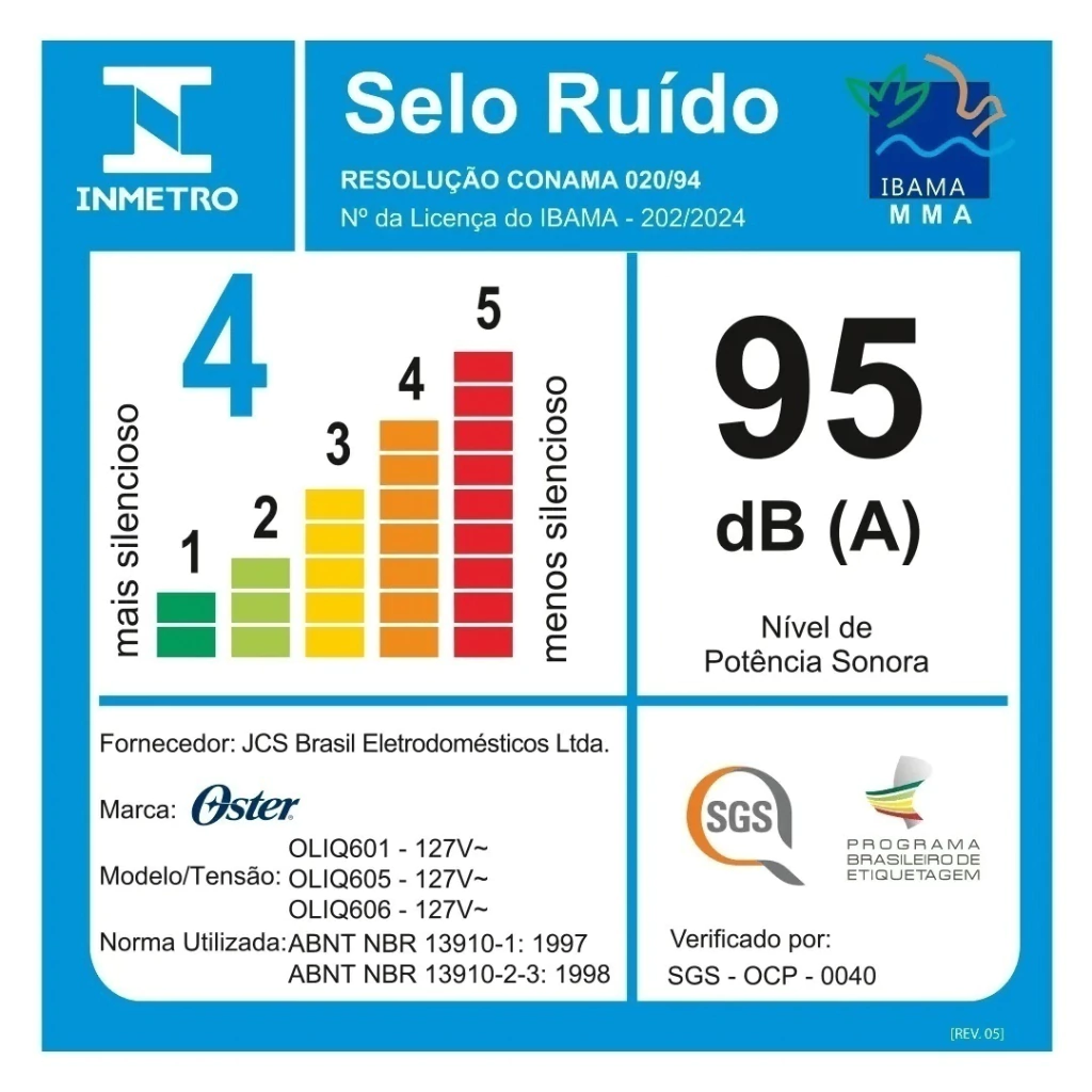 O liquidificador OLIQ606 possui 1100W de potência, 3,2 litros de capacidade e tampa medidora de 100ml que ajuda a medir o equivalente a até ½ xícara, facilitando muito na hora de preparar as receitas com a medida certa, praticidade e potência na hora de preparar receitas que possibilita aplicação da velocidade correta para cada receita, são 12 opções mais a função Pulsar.